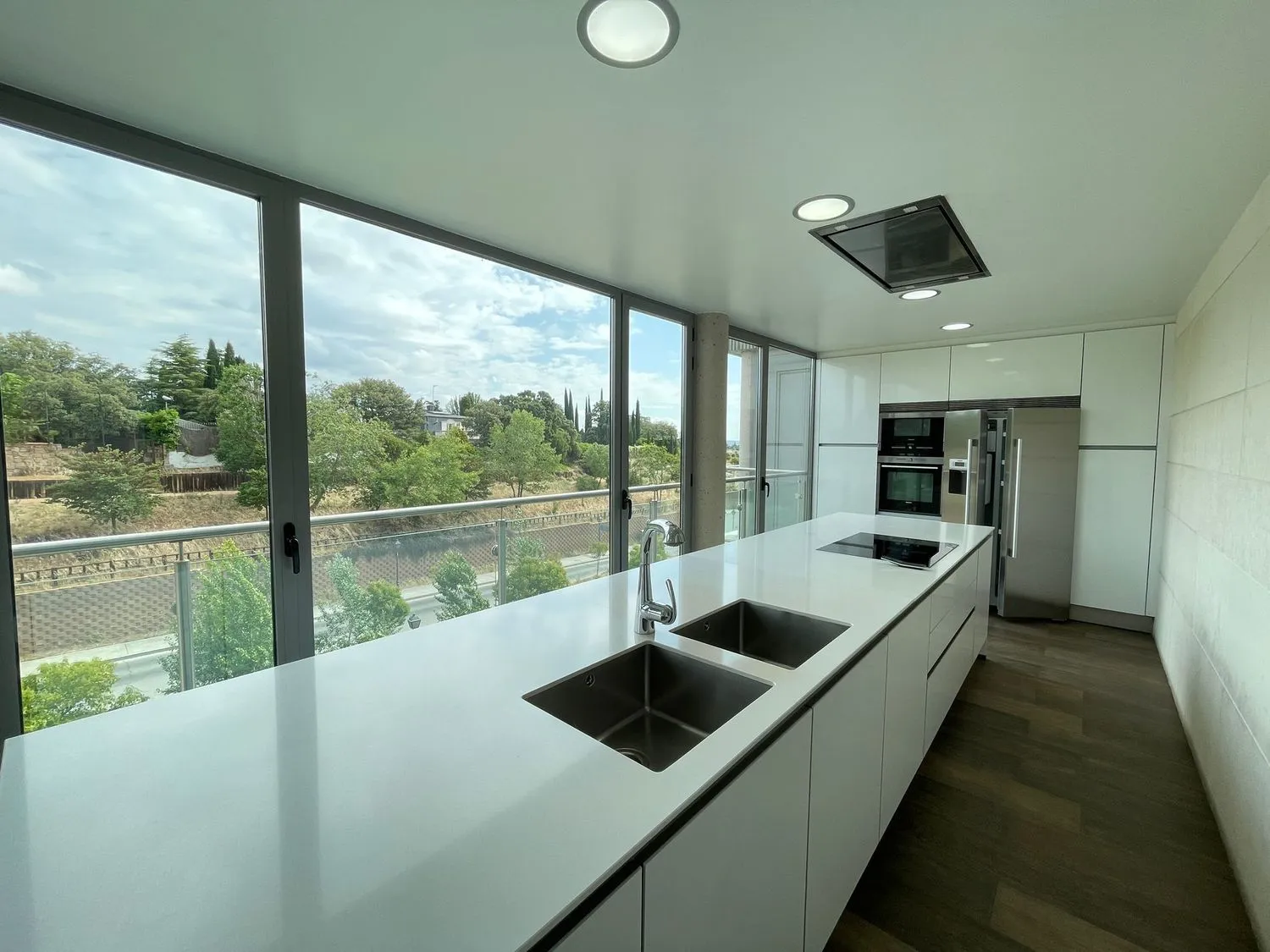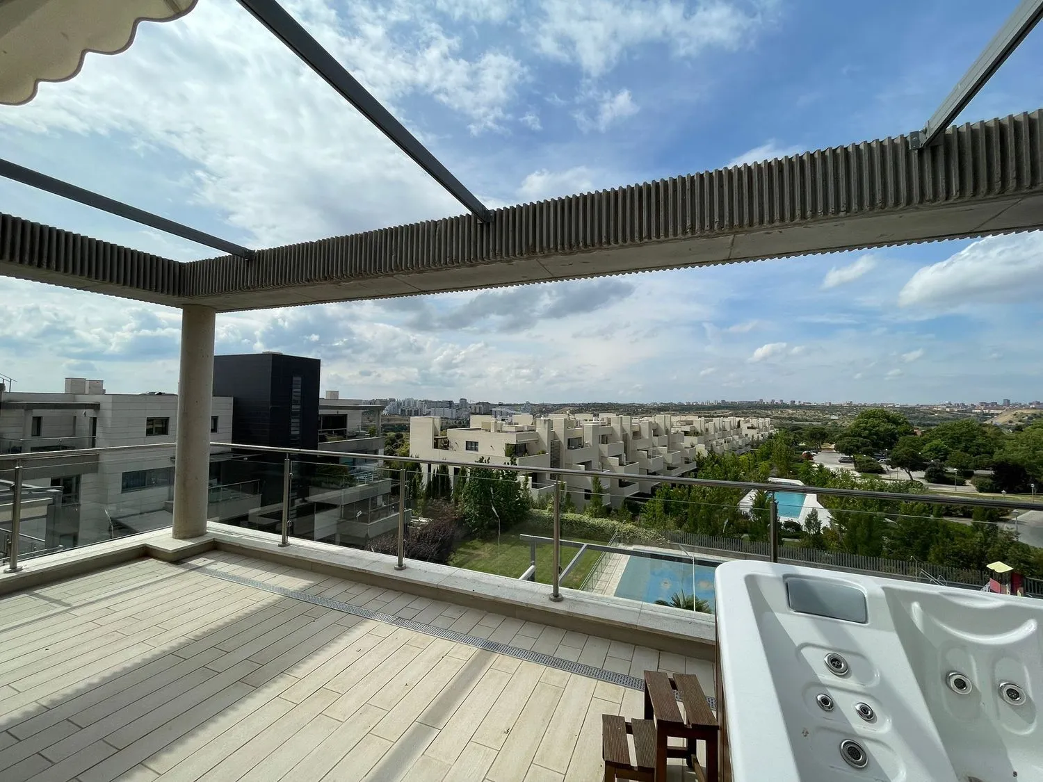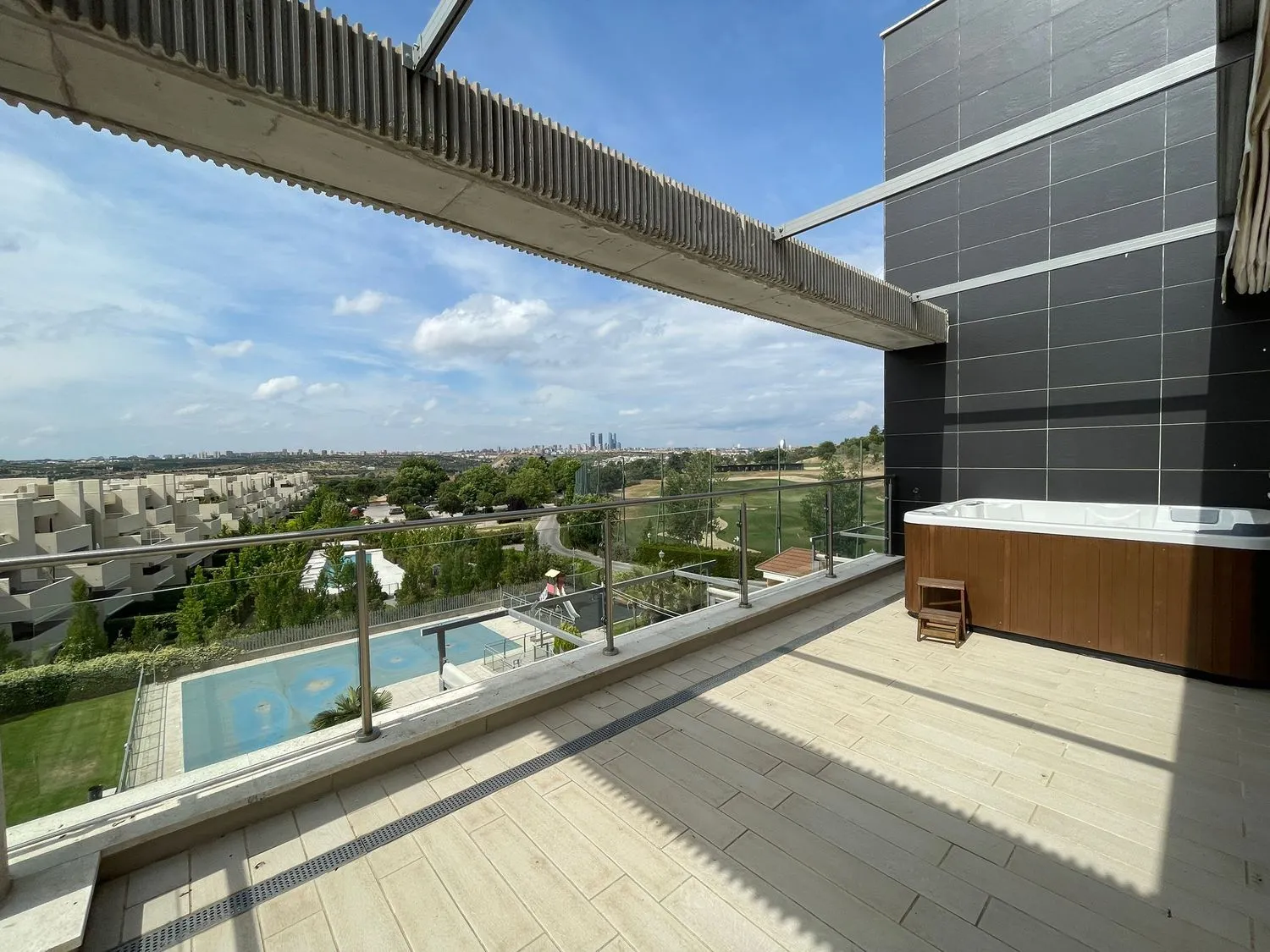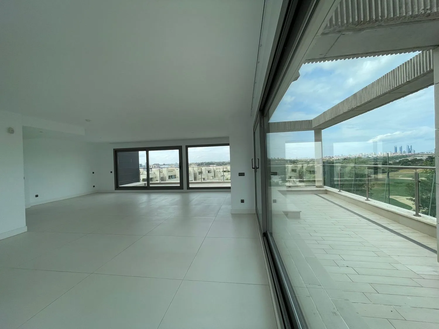 Este ático de 250 m² ofrece una experiencia residencial difícil de igualar. La vivienda se abre con un salón de generosas dimensiones, bañado de luz natural gracias a su orientación sur y oeste, y conectado con una espectacular terraza en esquina de 150 m² desde la que se domina el horizonte de Madrid. La cocina, independiente y orientada al norte, cuenta con una isla central y electrodomésticos integrados de alta gama, además de una zona de servicio con dormitorio y baño. La zona de descanso alberga tres dormitorios en suite, todos con acceso a terrazas privadas; uno de ellos incluye un jacuzzi exterior.
