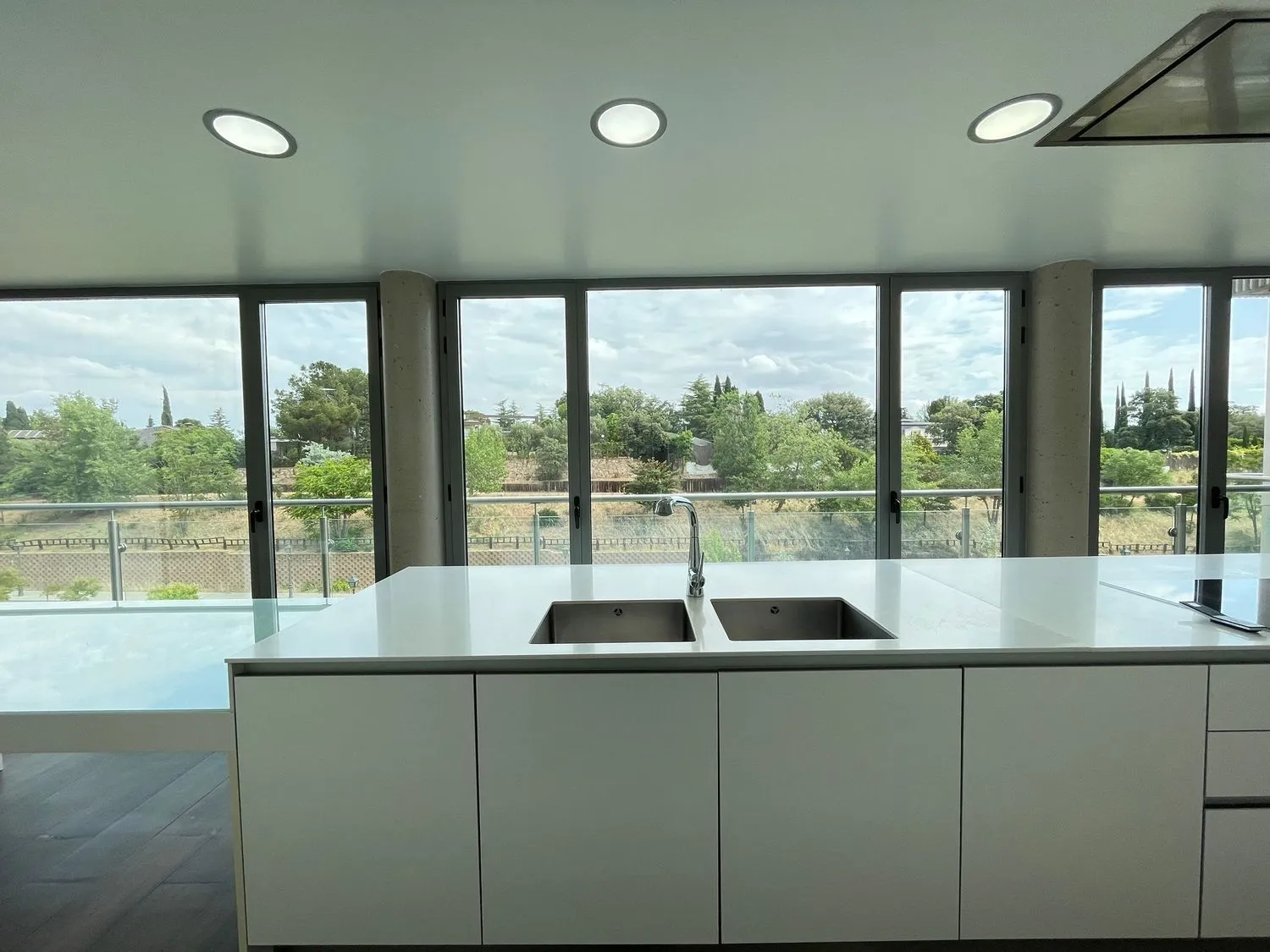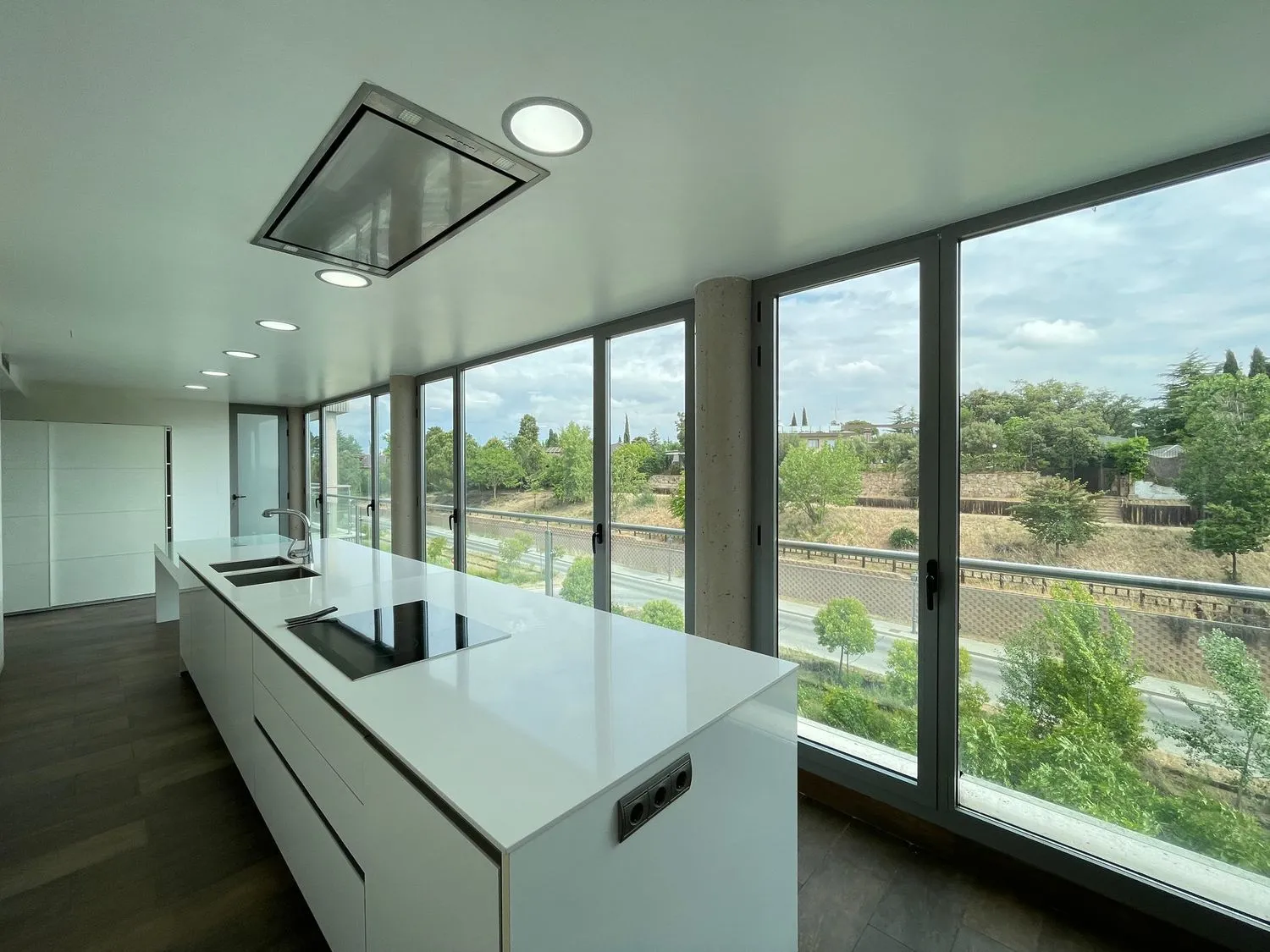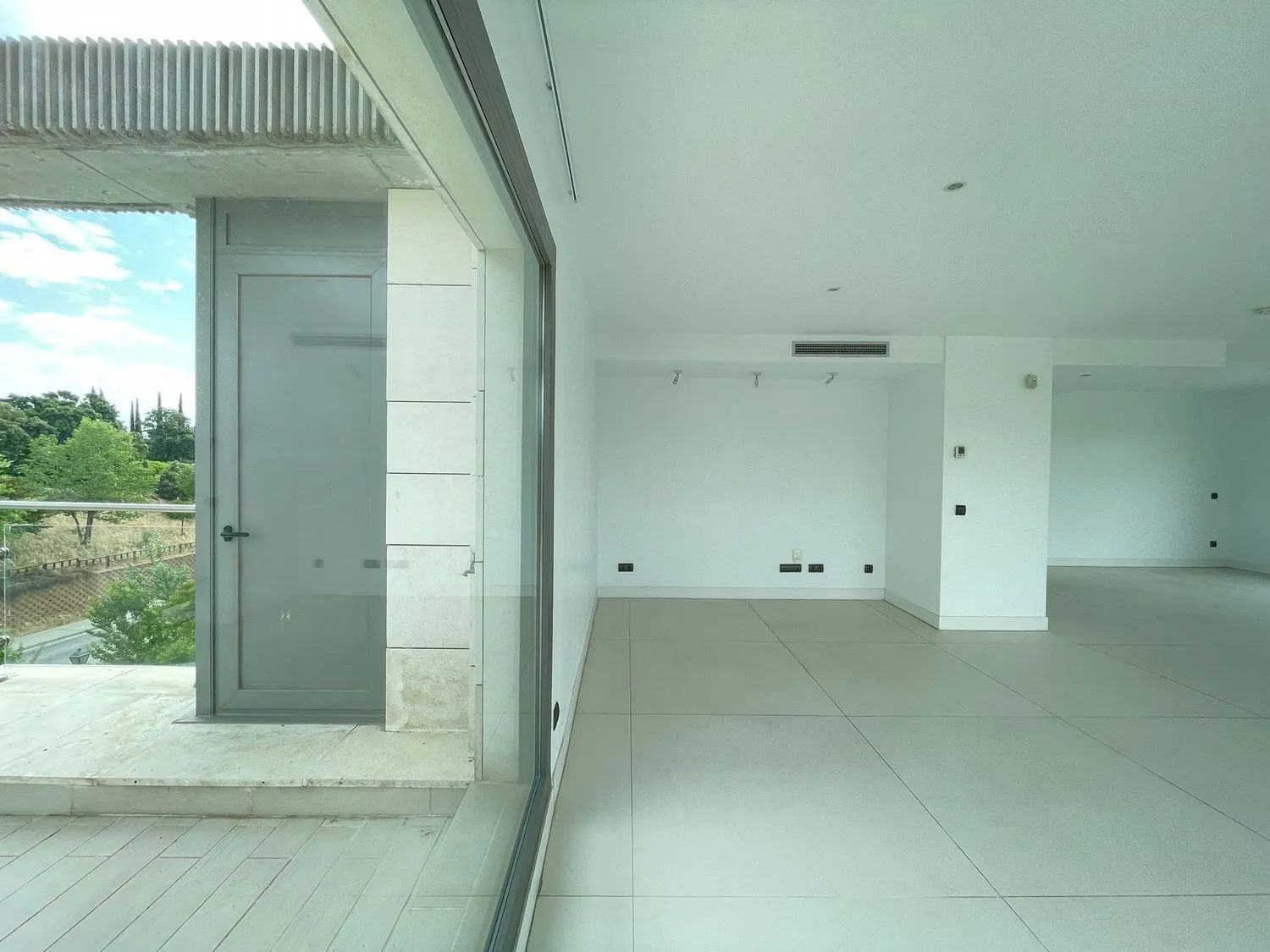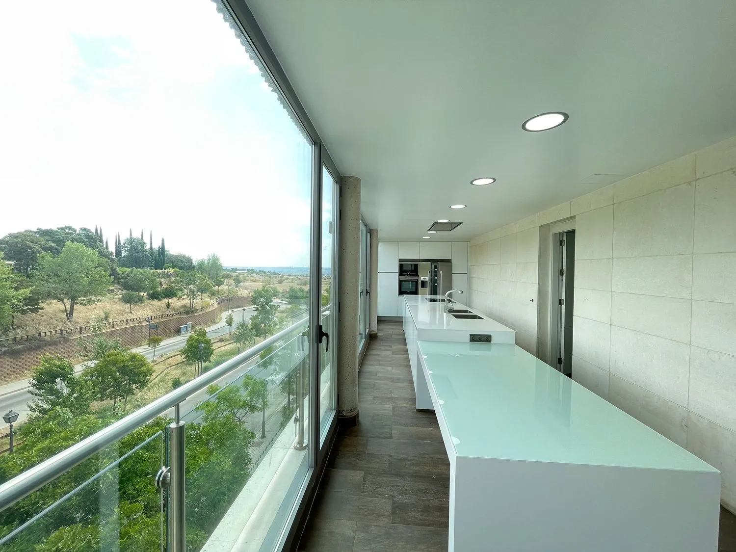 Este ático de 250 m² ofrece una experiencia residencial difícil de igualar. La vivienda se abre con un salón de generosas dimensiones, bañado de luz natural gracias a su orientación sur y oeste, y conectado con una espectacular terraza en esquina de 150 m² desde la que se domina el horizonte de Madrid. La cocina, independiente y orientada al norte, cuenta con una isla central y electrodomésticos integrados de alta gama, además de una zona de servicio con dormitorio y baño. La zona de descanso alberga tres dormitorios en suite, todos con acceso a terrazas privadas; uno de ellos incluye un jacuzzi exterior.