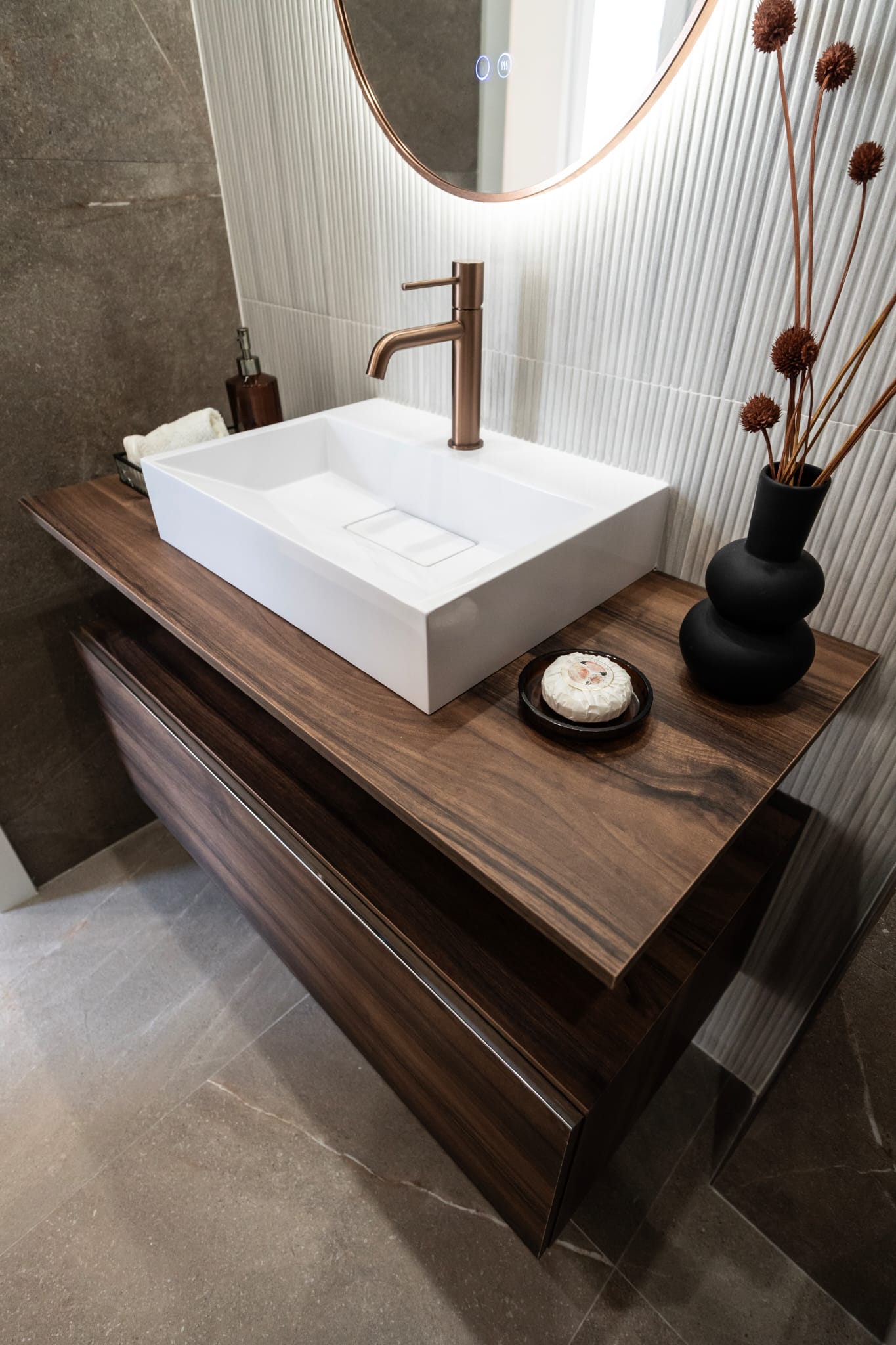 La propiedad, con 93 m² construidos, ofrece una distribución pensada para el disfrute: un amplio salón-comedor con cocina integrada equipada con electrodomésticos de alta gama marca Bosch, ideal para quienes valoran tanto el diseño como la funcionalidad. Dispone de dos dormitorios y dos baños completos, uno de ellos en suite con un gran vestidor, además de una práctica zona de lavado.