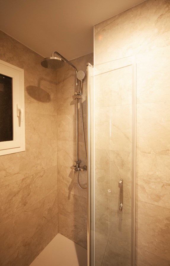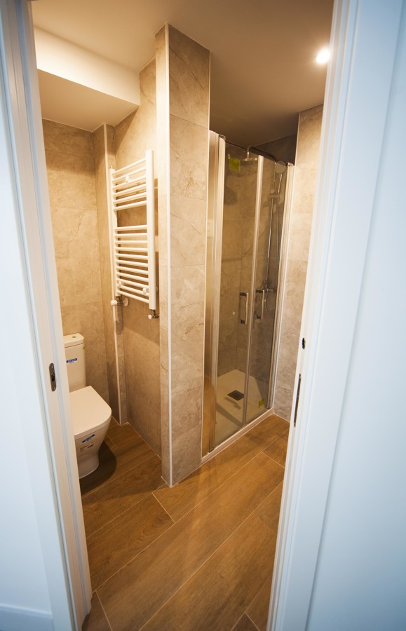 Durante tres meses, Dcore llevó a cabo una reforma integral basada en el minimalismo y la funcionalidad. La cocina compacta en blanco brillante, con electrodomésticos integrados, potencia la limpieza visual y la practicidad. Los baños, revestidos en porcelánico beige y con duchas de cristal y mobiliario suspendido en madera, combinan calidez y modernidad. Los suelos cerámicos imitación madera unifican todo el espacio, mientras que la iluminación indirecta amplifica la sensación de amplitud y confort. El resultado: una vivienda contemporánea, serena y funcional, perfectamente adaptada al ritmo de la vida actual y al sello distintivo de Dcore.